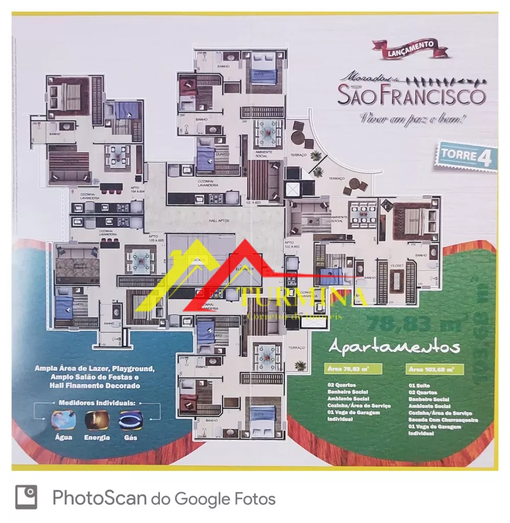 -Apto com: 103,68m² 01 Suite + 02 Quartos, WC social, Ambiente social, cozinha/área de serviço, sacada com churrasqueira, 01 vaga de garagem individual.