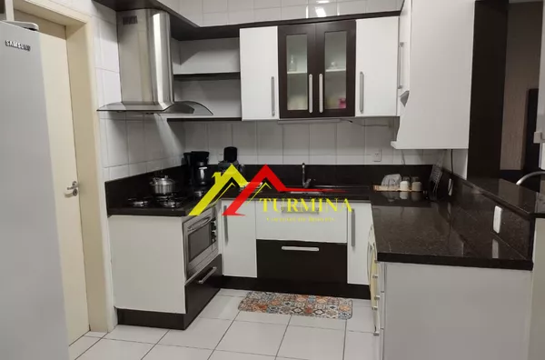 COZINHA INTEGRADA COM SACADA AMPLA COM CHURRASQUEIRA E PIA.